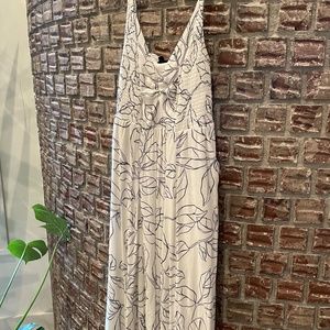 Adorable white dress with black floral design, WITH POCKETS!!!, flowy summer material and super flattering. Only worn a handful of times. Size 0 (equivalent to a 12).