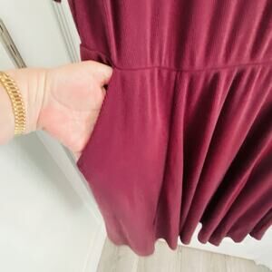 Torrid Dress Plus Size 1 1X Forest Fairy Mini Rib Knit Skater BURGUNDY Autumn