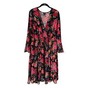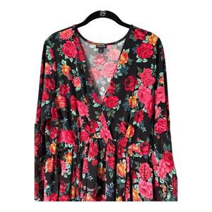 Torrid Dress Size 3 3X Floral Mini Chiffon and Studio Knit Surplice Bell Sleeves