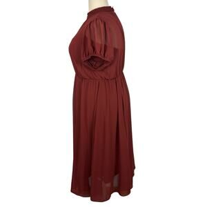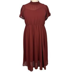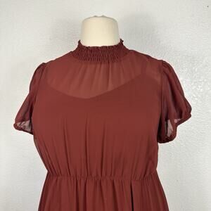 Torrid Dress Women 1X Rust Brown Chiffon Midi Smocked Neck Romantic Fall Style