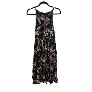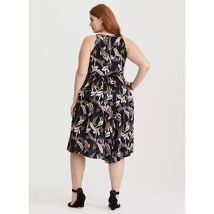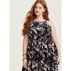 Torrid Dress Womens 0 Midi Challis High Neck Black Palm Tropical Sleeveless Hi-Low. Good Preowned Condition.