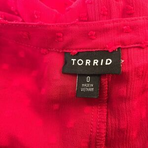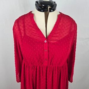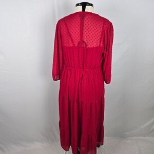 Torrid Dress Women's 0X 12 Red Midi Dot Chiffon Cottagecore Lagenlook 3/4 Sleeve
