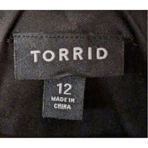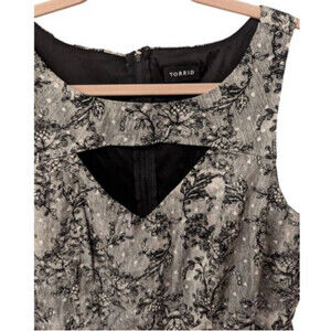 Torrid Dress Womens size 12 Fit and Flare style with a Lace Look in Black and White. Alline shape with a Cut Out in front. In good pre-owned condition without any rips, holes or tears.