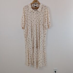 Torrid Dress Women's 1X White Cream Floral Shirtdress Maxi Challis Hi Low Tier