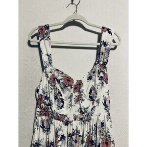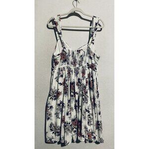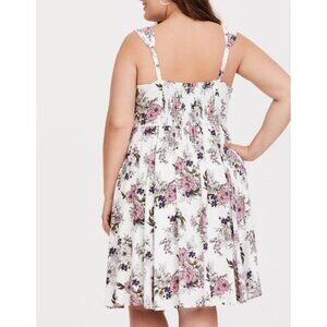 Torrid Dress Womens 1X White Floral Mini Challis Skater Smocked Pockets Romantic
