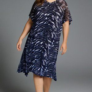 Torrid Dress Women's Size 4X Dark Grey & Pink Zebra Hacci Mock Neck Trapeze