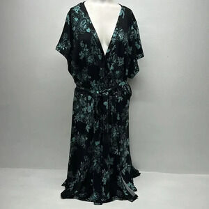 Torrid Dress Faux Wrap Midi Studio Knit Floral Flower Black Blue Plus Size 4X