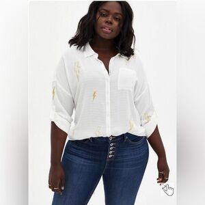 Torrid Drop Shoulder Button-Front Top - Lightning White