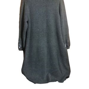 Torrid drop shoulder open front duster with sequin detail on sleeves. Deep pockets. Bishop sleeves. Acrylic, polyester, nylon and spandex