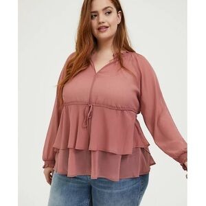Torrid Dusty Rose Chiffon Double Layer Blouse Size 3X