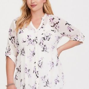 Torrid EMMA - WHITE FLORAL CHIFFON BABYDOLL TUNIC