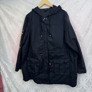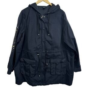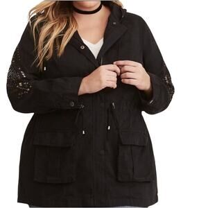 Torrid Embellished Black Utility Hooded Jacket with Pockets Size 3X