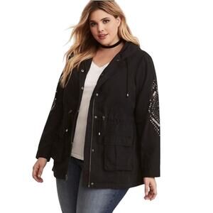 Torrid Embellished Black Utility Hooded Jacket with Pockets - Great condition, see all pictures!