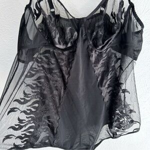 Torrid Embroidered Flames Black Unlined Underwire Bodysuit Sz 6