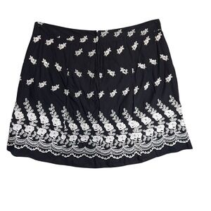 Torrid Embroidered Floral Black-White A-Line Skirt Hi-Lo Hem Size 18 Boho Retro