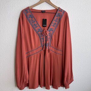 Torrid Embroidered Lace-Up Babydoll Top NWT Size 3
