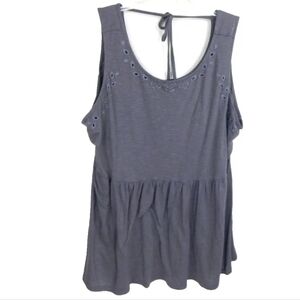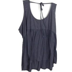 Item: Women's Gray Floral Embroidered Tie Back Feather Soft Babydoll Tank