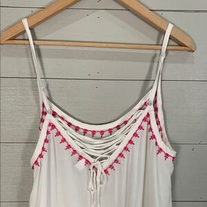 Torrid Embroidered White and Pink Women's spaghetti strap summer tank top