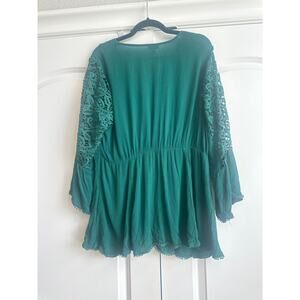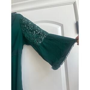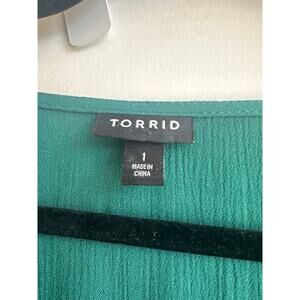 Torrid Emerald Green Boho Lace Eyelet and Frills Flowy Blouse