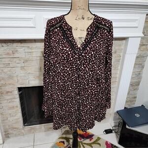 Torrid Emma Babydoll Rayon Slub Lace Trim hearts and stars Tunic Top plus size 2