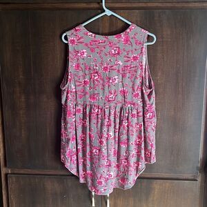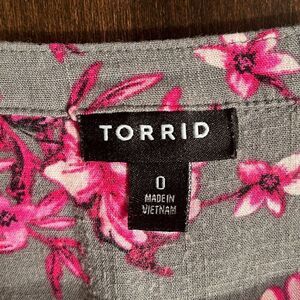 This top is made by Torrid. It is a sleeveless babydoll style with a pink floral print. Torrid size 0 and in very nice pre owned condition. Smoke and pet free home.