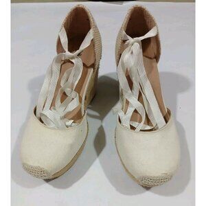 Torrid Espadrille Platform Wedge Shoes Size 9.5 WW Extra Wide Tie Up Cream