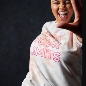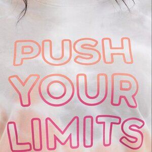 'Push Your Limits' in this active sweatshirt with a tie-dye design and long sleeves with thumbholes.