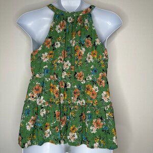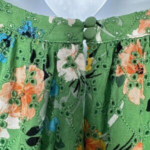 Torrid Eyelet Babydoll Top 1X Halter Green Floral Tiered