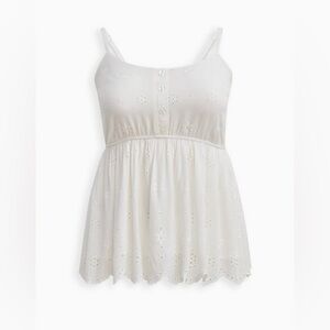 Torrid Eyelet Peplum Voile White Eyelet Camisole Top NEW NWT Size 00/10/M-L