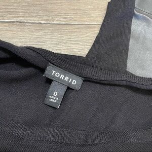 Torrid FAUX LEATHER SLEEVE SWEATER Black Pullover Long Sleeve Sz 0 (large)