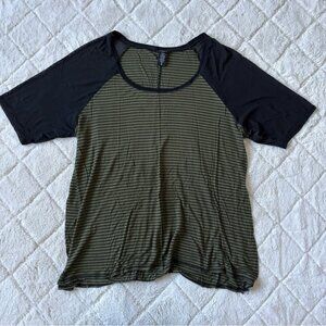 Torrid | FLAWED Olive & Black Mesh Sleeve Striped Raglan Tee | Size 3X