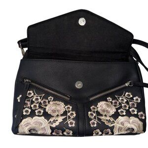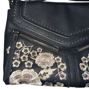 Torrid Faux Leather Studded Embroidered Floral Crossbody Adjust Strap Zip Flap