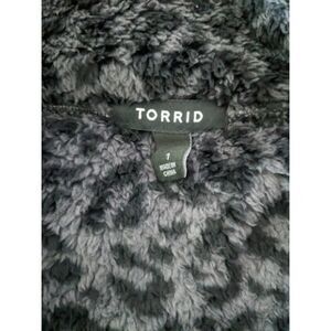 Torrid Faux Shearling Charcoal Leopard Print Grey Zip Front Jacket Size 1X 14-16