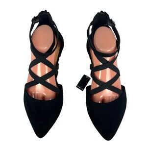 Torrid Faux Suede Elastic Criss-Cross Strappy Black Sandals Womens Size 9.5WW