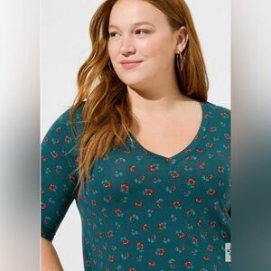 Torrid Favorite Tunic Super Soft V-Neck Side Slit Tee Ditsy Floral 6X NWT IN PKG