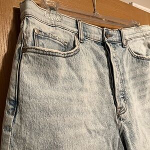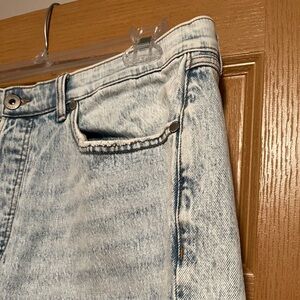 Acid wash print, blue, light wash, high rise waist