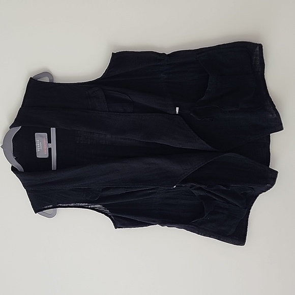 Torrid Feel The Fit Lagenlook Boho Black Cotton Gause Open Vest 1X 14-16 K14