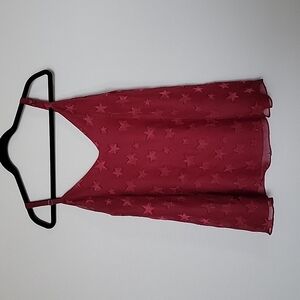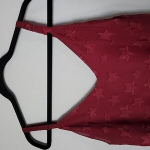 Burgundy color. Lightweight fabric, doesn't stretch. Adjustable straps. Great condition. Raised stars all over. V neck and V back. Lined. Great for the holidays or anytime. festive, brunch, going out, dinner, date night, office, workplace, career, vamp, goth, moody, plus, curvy, fall, concert, weekend, celestial, witchy