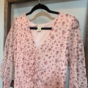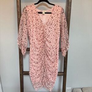 Torrid Festi Mini Mesh Pink Floral Long Sleeve Bodycon Dress 1X 14/16