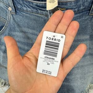 Torrid Festi Plus Size Ultra High Rise Cheeky Fray Hem Denim Shorts Size 26