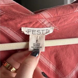 Stylish red plaid blouse with button-up front and ruffled hem. Perfect for casual wear, trendy boho vibes.