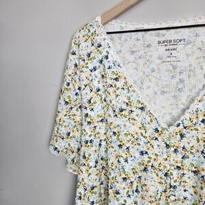 Torrid Fitted Supersoft Rib V-Neck Lace Trim Button Crop Tee Ditsy Floral