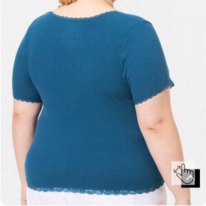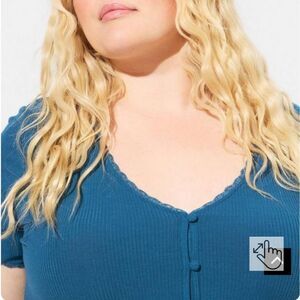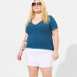Torrid Fitted Supersoft Rib V-Neck Lace Trim Button Crop Tee New