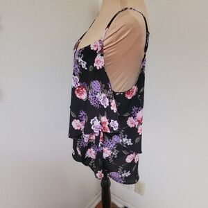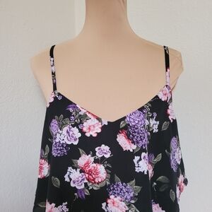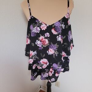 Elegant women's top featuring a vibrant floral design on a black background. Perfect for adding a touch of color to your wardrobe.