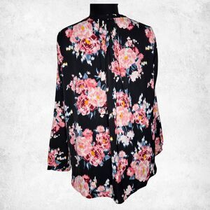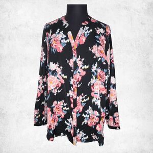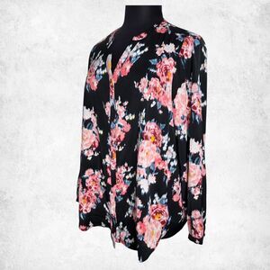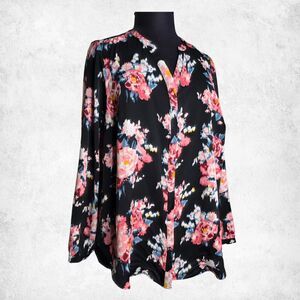 Torrid Floral Blouse 3X – Black Pink Rose Print Top Plus Size Long Sleeve