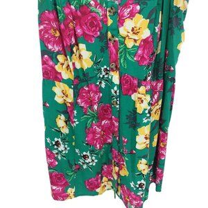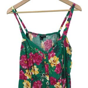 Torrid Floral Button Up Corset Laceup Tank Top Size 1X Plus Green Flower Pink