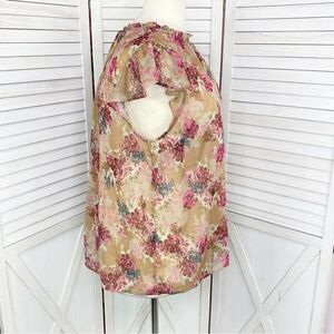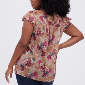 Torrid Floral Chiffon Flutter Sleeve Blouse Tan Pink 2X
