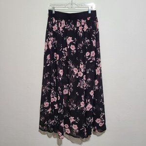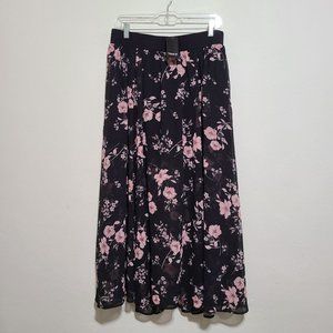 Torrid Floral Chiffon Maxi Skirt Size 00X M/L Black Pink