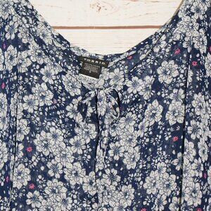 Torrid Floral Chiffon Ruffled Shoulder 5 Plus Size 5X Blue Grey Pink