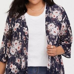 Torrid Floral Chiffon Maxi High-Low Kimono Sise 1/2 14-20 1X-2X